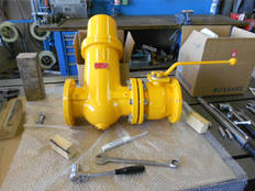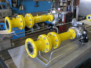 Nachdem die Rohrteile auf Dichtigkeit geprüft und die Schweissnähte geröntgt wurden, werden alle Bauteile gereinigt, industriell gelb pulverbeschichtet und anschliessend montiert.