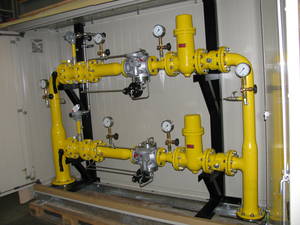 Wir planen, fertigen und liefern schlüsselfertige Anlagen in Schwarzstahl oder Edelstahl für Ihre Anwendungen. Dieses Beispiel zeigt eine unserer Gasdruckregelstationen zur Einspeisung von Erdgas in das Leitungsnetz.